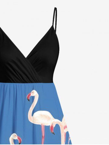 Plus Size Flamingo Print Hawaii Surplice A Line Cami Dress - Blue - S