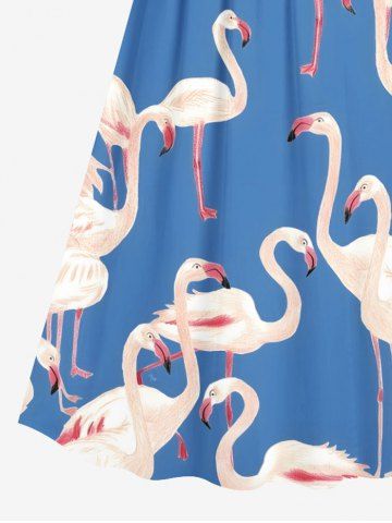 Plus Size Flamingo Print Hawaii Surplice A Line Cami Dress - Blue - 4x