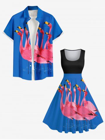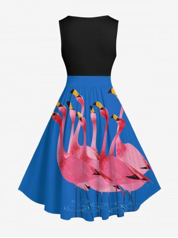 Plus Size Flamingo Print Hawaii Swing A Line Dress - Sky Blue - L