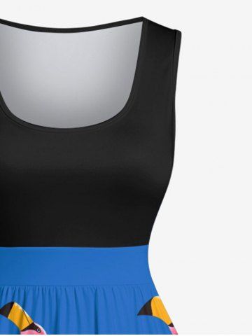 Plus Size Flamingo Print Hawaii Swing A Line Dress - Sky Blue - 3x