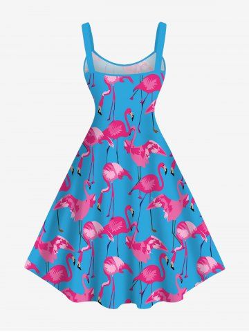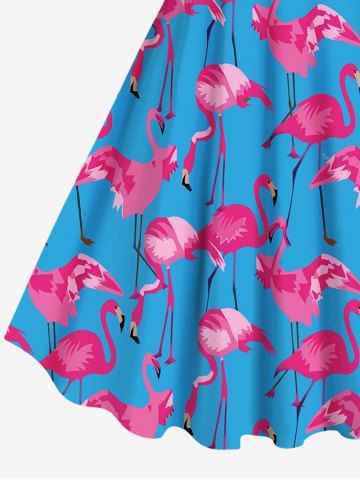 Plus Size Flamingo Print Hawaii Tank Dress - Sky Blue - 5x