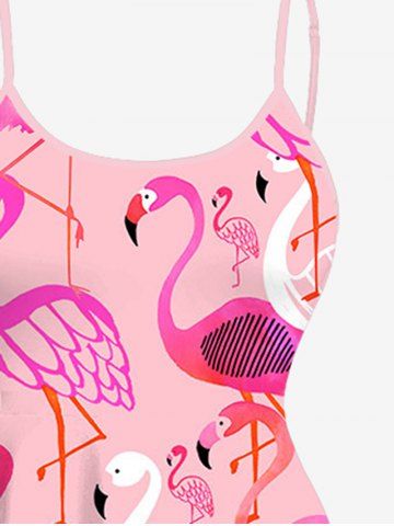 Plus Size Flamingo Print High Low Hawaii Cami Dress - Light Pink - 4x