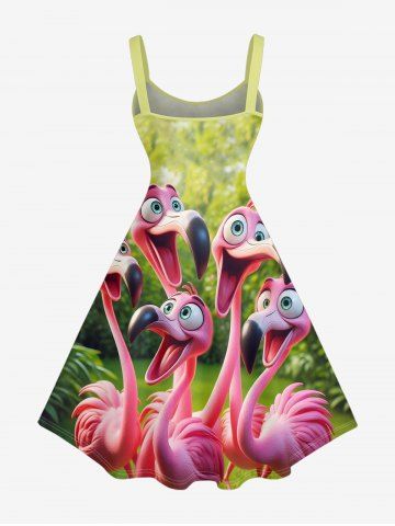 Plus Size Flamingo Trees Print Hawaii Tank Dress - Green - 3x
