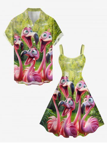 Graphic Dresses > Plus Size Flamingo Trees Print Hawaii Tank Dress