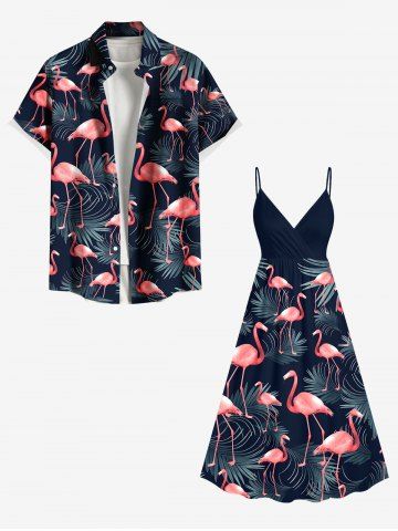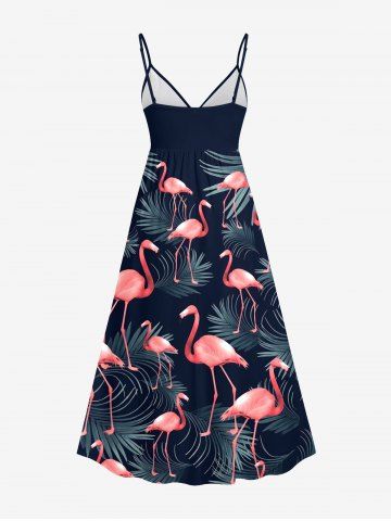 Plus Size Flamingo Tropical Leaf Print Surplice Hawaii Cami Dress - Navy Blue - 4x