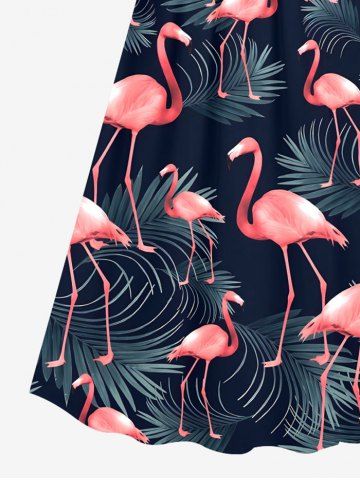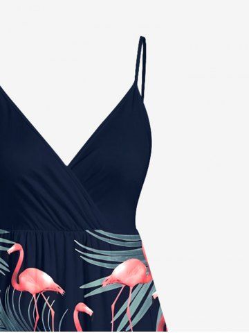 Plus Size Flamingo Tropical Leaf Print Surplice Hawaii Cami Dress - Navy Blue - 5x