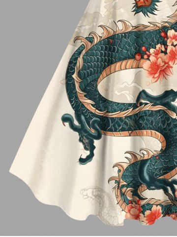 Graphic Dresses > Plus Size Flower Branch Dragon Print A Line Tank Dress