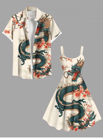 Plus Size Flower Branch Dragon Print A Line Tank Dress - Light Coffee - L