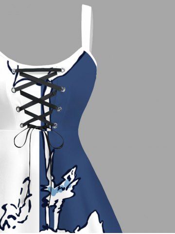 Plus Size Floral Butterfly Colorblock Print Hawaii Lace Up A Line Tank Dress - White - 4x