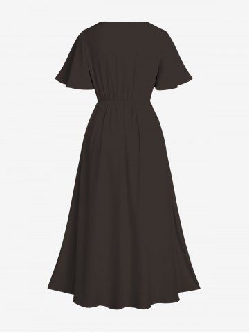 Plus Size Floral Butterfly Leaves Print Hawaii Split Pocket A Line Midi Dress - Deep Coffee - 6x