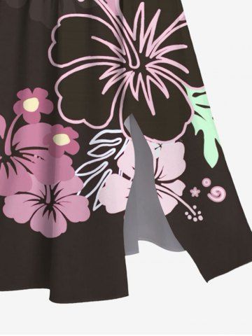 Graphic Dresses > Plus Size Floral Butterfly Leaves Print Hawaii Split Pocket A Line Midi Dress