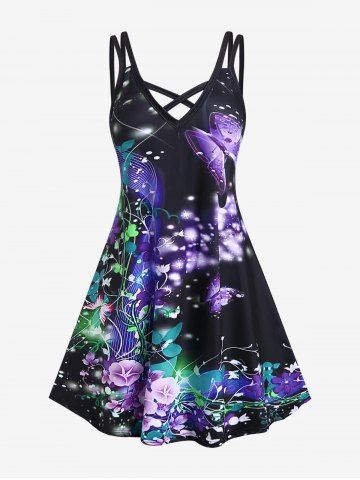 T*****y5Color: BLACK Size: 5X | US 30-32Plus Size Floral Butterfly Print Crisscross Sundress - Black - 5x | Us 30-3 Beautiful. Flowy. Long Arrived quickly