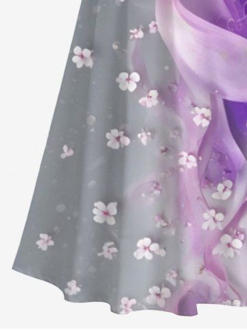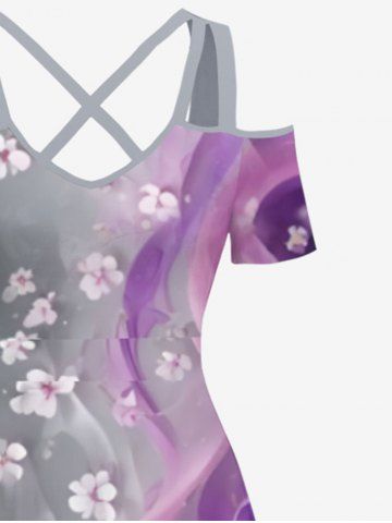 Plus Size Floral Curve Smoke Print Hawaii Crisscross A Line Maxi Dress - Gray - M