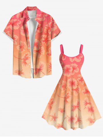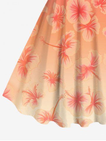 Plus Size Floral Dip Dye Ombre Print Hawaii A Line Tank Dress - Orange - S