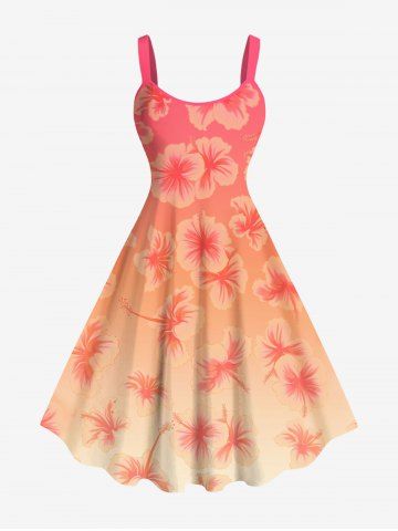 Plus Size Floral Dip Dye Ombre Print Hawaii A Line Tank Dress - Orange - 5x