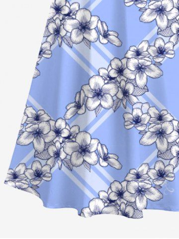 Plus Size Floral Geometric Plaid Print Hawaii Crisscross A Line Maxi Dress - Light Blue - 1x