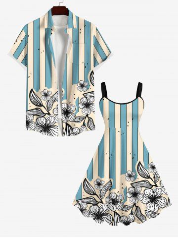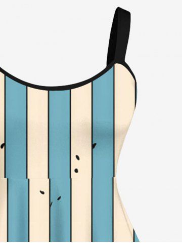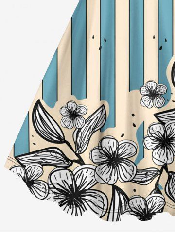 Graphic Dresses > Plus Size Floral Geometric Striped Colorblock Print Hawaii A Line Tank Dress