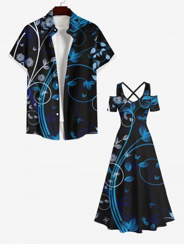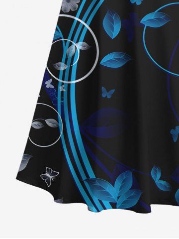 Graphic Dresses > Plus Size Floral Leaf Butterfly Curve Print Hawaii Crisscross A Line Maxi Dress