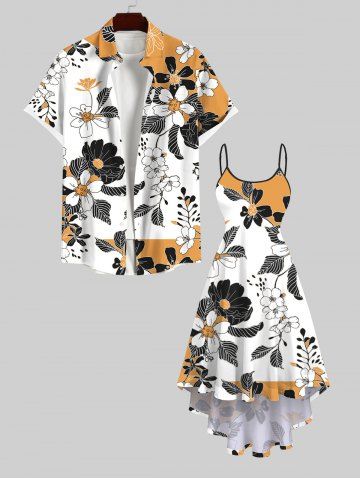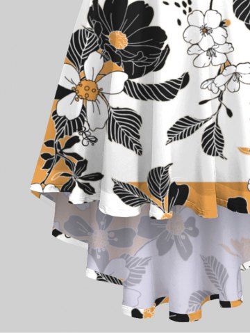 Graphic Dresses > Plus Size Floral Leaf Colorblock Print Hawaii High Low Asymmetric Cami Dress