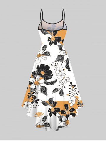 Graphic Dresses > Plus Size Floral Leaf Colorblock Print Hawaii High Low Asymmetric Cami Dress