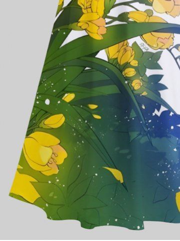 Graphic Dresses > Plus Size Floral Leaf Print Hawaii Crisscross A Line Maxi Dress