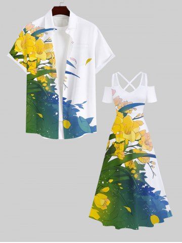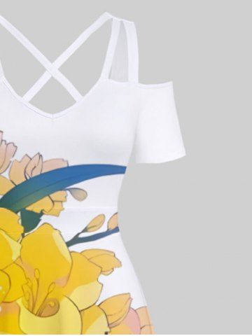 Plus Size Floral Leaf Print Hawaii Crisscross A Line Maxi Dress - White - S