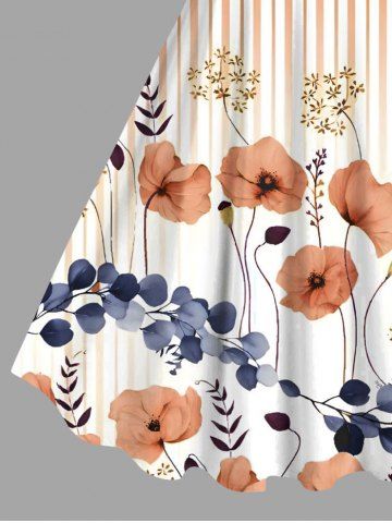 Graphic Dresses > Plus Size Floral Leaves Branch Light Beam Striped Print Hawaii A Line Tank Dress