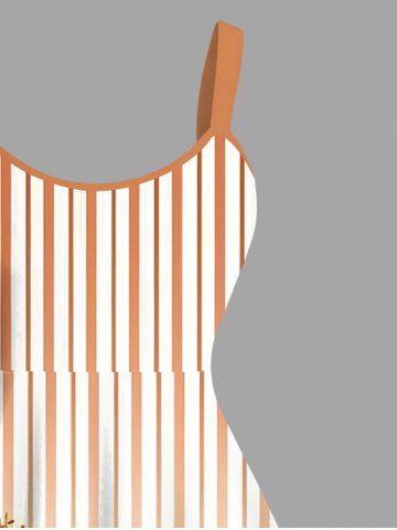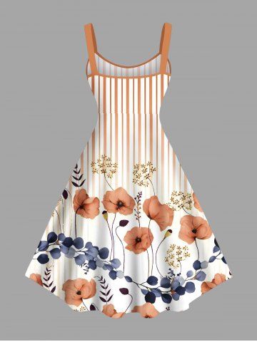 Plus Size Floral Leaves Branch Light Beam Striped Print Hawaii A Line Tank Dress - Light Orange - 6x