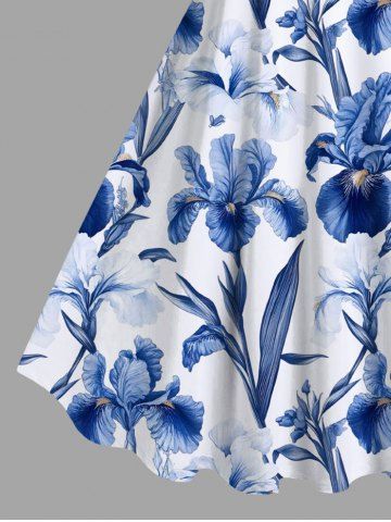 Plus Size Floral Leaves Branch Print Hawaii A Line Tank Dress - Blue - 5x