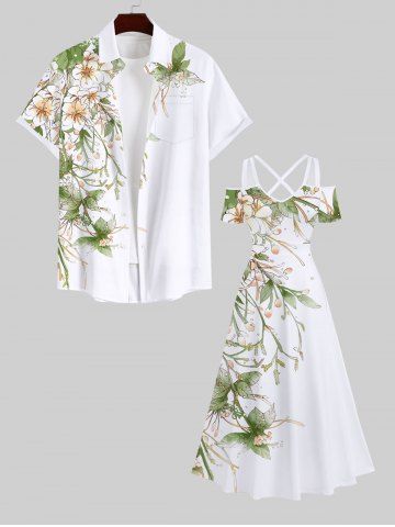 Floral Leaves Branch Print Plus Size Matching Hawaii Beach Outfit For Couples
