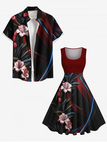 Plus Size Floral Leaves Curve Ombre Print Hawaii A Line Dress - Black - 1x