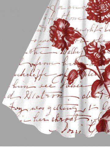 Plus Size Flower Leaf Ombre Letters Print Hawaii A Line Tank Dress - White - 4x