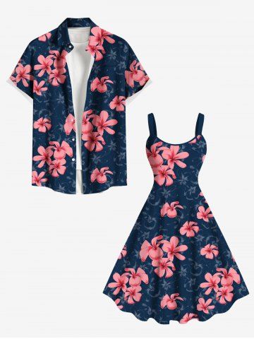 Flower Leaf Print Plus Size Matching Hawaii Beach Outfit For Couples
