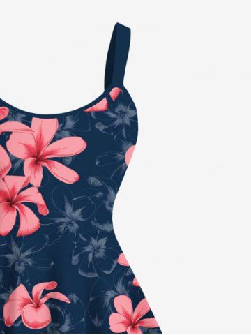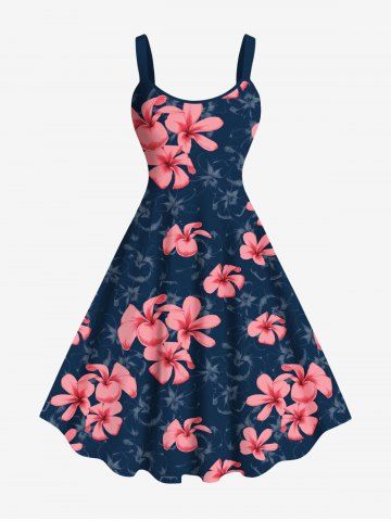 Graphic Dresses > Plus Size Floral Leaves Print Hawaii A Line Tank Dress