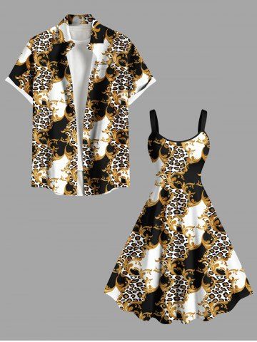 Plus Size Floral Leopard Colorblock Print Hawaii Tank Dress - Deep Coffee - 2x