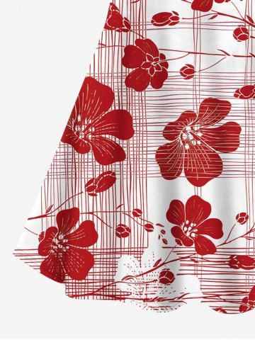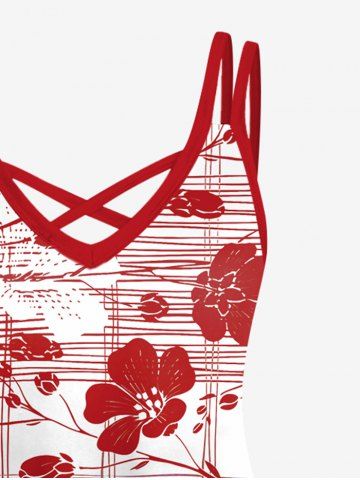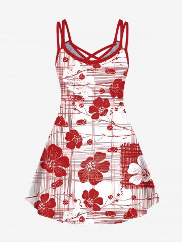Graphic Dresses > Plus Size Floral Line Braided Print Hawaii Crisscross A Line Cami Dress