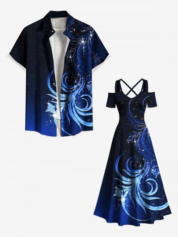Graphic Dresses > Plus Size Floral Pattern Glitter 3D Print Cold Shoulder Crisscross Hawaii Maxi Dress