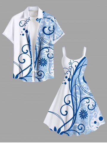 Plus Size Floral Pattern Print Hawaii Tank Dress - Light Blue - S
