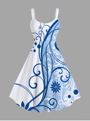 Graphic Dresses > Plus Size Floral Pattern Print Hawaii Tank Dress