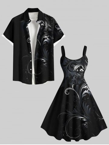 Plus Size Floral Pattern Print Hawaii Tank Dress - Black - 1x