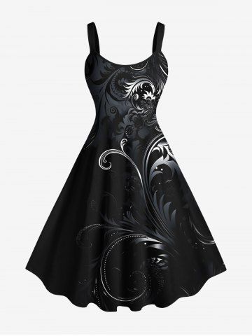 Plus Size Floral Pattern Print Hawaii Tank Dress - Black - 3x