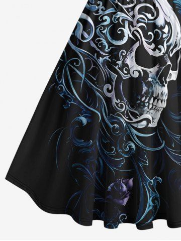 Graphic Dresses > Plus Size Floral Pattern Skull Print Hawaii 1950s Vintage Dress