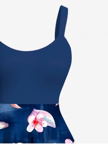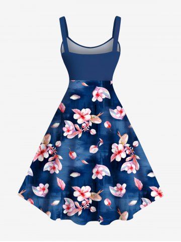 Plus Size Floral Petal Leaves Print Hawaii Ombre A Line Tank Dress - Blue - L