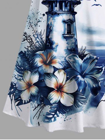Graphic Dresses > Plus Size Floral Sea Observation Deck Bird Print Hawaii Cold Shoulder Crisscross A Line Maxi Dress