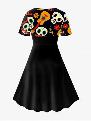 Graphic Dresses > Plus Size Floral Skull Guitar 3D Print Vintage Dress