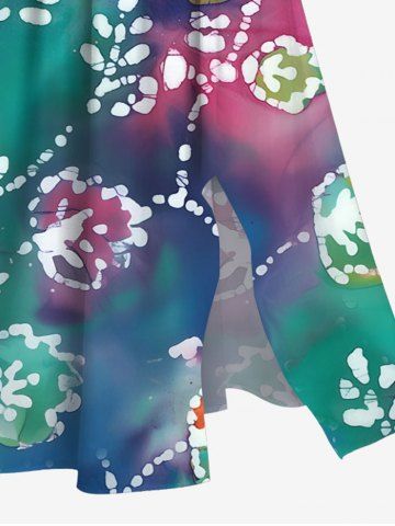 Plus Size Floral Tie Dye Ombre Print Hawaii Split Pocket A Line Midi Dress - Blue - 6x