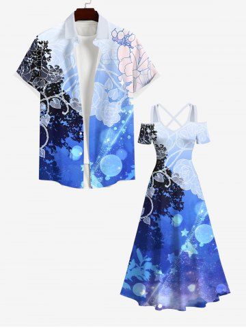 Graphic Dresses > Plus Size Floral Tree Light Beam Heart Leaf Stars Bubble Print Hawaii Crisscross A Line Maxi Dress