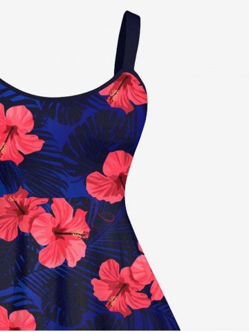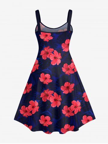 Plus Size Floral Tropical Leaves Print Hawaii Ombre A Line Tank Dress - Multi-a - 1x