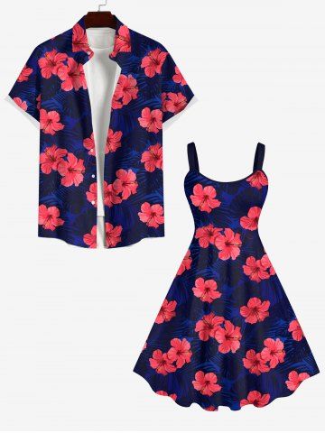 Graphic Dresses > Plus Size Floral Tropical Leaves Print Hawaii Ombre A Line Tank Dress