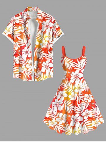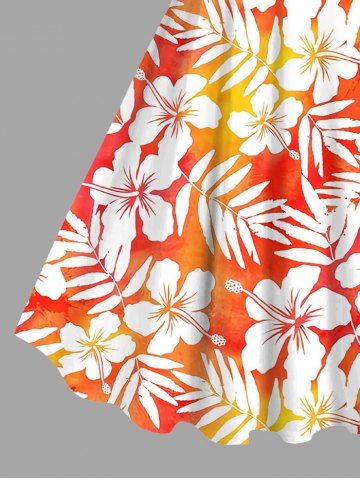 Plus Size Floral Tropical Leaves Print Hawaii Ombre A Line Tank Dress - Orange - 2x